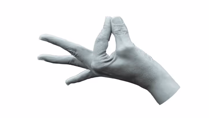چگونه: انگشتان شست، اشاره و وسط خود را به هم نزدیک کنید، حلقه و انگشتان صورتی خود را به سمت کف دست خود خم کنید. سپس با باز کردن انگشتان شست، اشاره و انگشتان میانی حالت شکوفه ایجاد کنید.